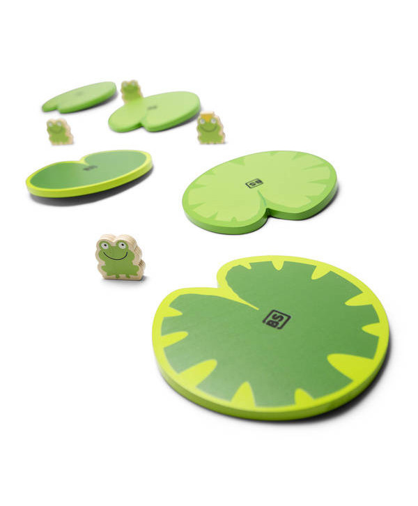 Gra sensoryczna Zbieraj żabki to pomoc, która pomaga dzieciom uczyć się równowagi, ćwiczy koordynację ruchową oraz balansowanie ciałem. Gra polega na przechodzeniu przez poszczególne chwiejne, balansujące liście. Dodatkowym utrudnieniem dla graczy jest pozbieranie żabek znajdujących się na trasie. Gracze muszą wykazać się logicznym myśleniem i sprytem w planowaniu ruchu, tak aby nie spaść z liścia.