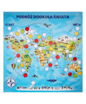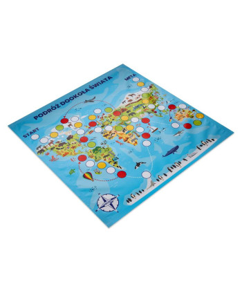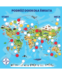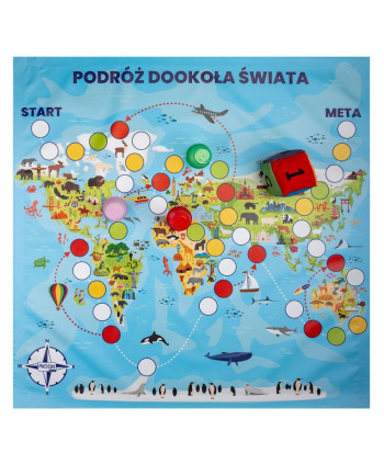 Mega gra planszowa PODRÓŻ DOOKOŁA ŚWIATA poszerza zakres zabaw i sposób postrzegania świata. Pomoc znakomicie wspomaga rozwój koordynacji wzrokowo - ruchowej, ćwiczy refleks i spostrzegawczość, równocześnie umożliwia czerpanie radości płynącej z ruchu i rywalizacji w grupie.