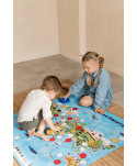 Rozmiar maty to 100x100 cm. Dzięki kolorowemu nadrukowi gra jest atrakcyjna wizualnie.W zestawie: