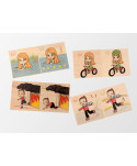 - 32 drewniane płytki o wymiarach 10 x 10 cm, z kolorowymi ilustracjami przedstawiającymi dobre i niebezpieczne zachowanie w różnych okolicznościach